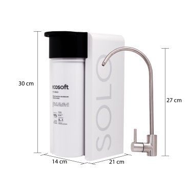 ECOSOFT Cross Solo uses advanced reverse osmosis technology to ensure high-quality water purification. The system operates with a 2-in-1 replacement filter that combines an RO membrane and coconut-based carbon filtration, removing up to 99% of contaminants, including bacteria, viruses, and PFAS.