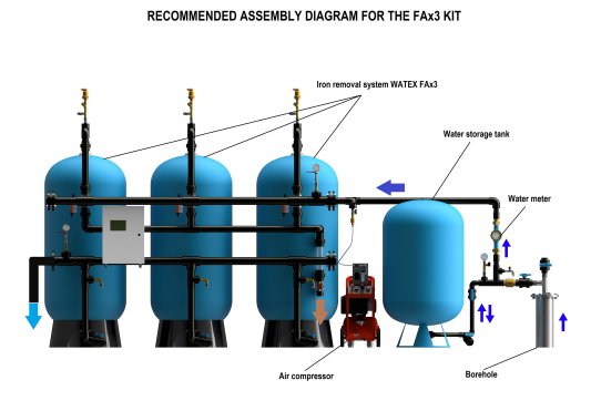 Labākais risinājums šai problēmai ir oksidācija ar gaisu, ko veic WATEX FA iekārtu modeļi. WATEX FA sērijas filtri paredzēti ūdens attīrīšanai no duļķainības, izšķīdušā un oksidētā dzelzs, mangāna, smakas un amonija ciematiem, pilsētām un ražošanas uzņēmumiem. Galvenokārt to pielieto pazemes ūdens vai centralizētās ūdens apgādes sistēmās.