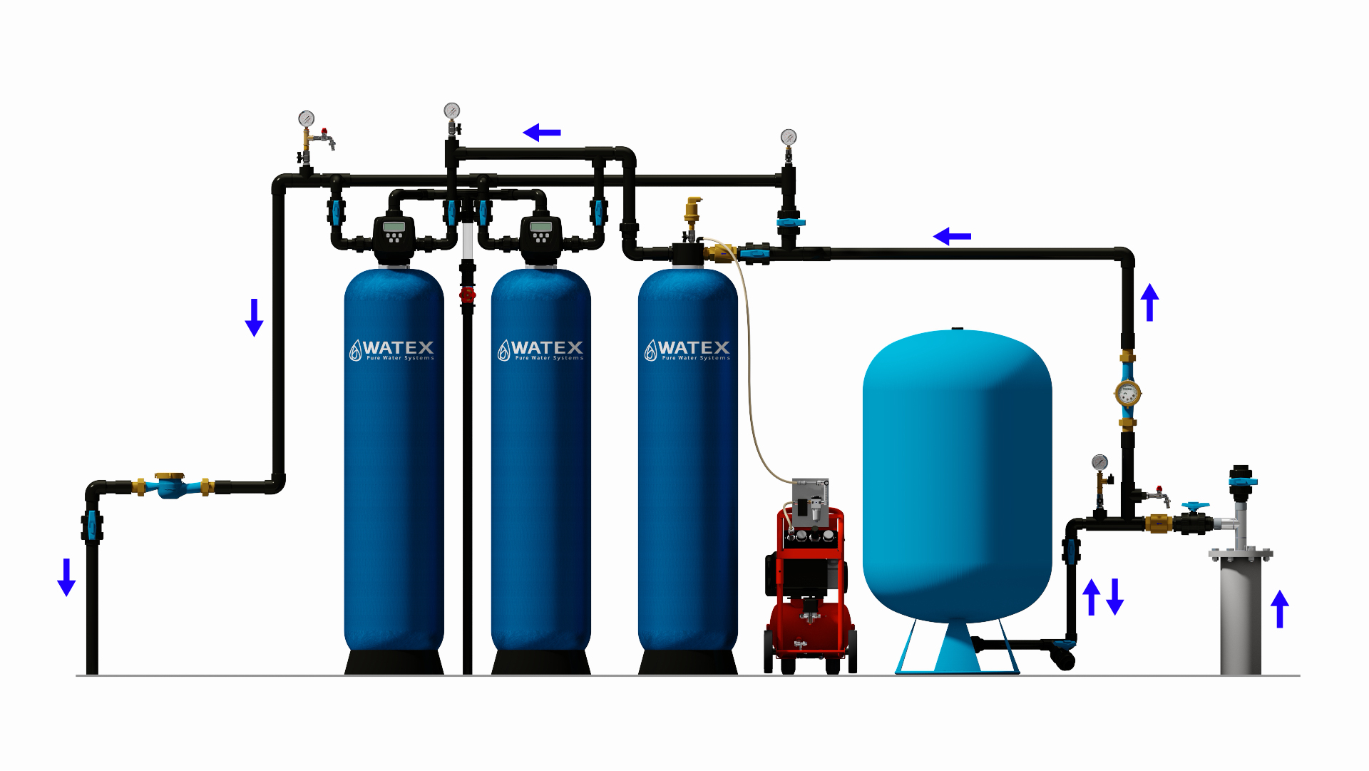 WATEX RCMBx2 sērijas filtri paredzēti ūdens attīrīšanai no duļķainības, izšķīdušā un oksidētā dzelzs, mangāna, smakas ciematiem, pilsētām un ražošanas uzņēmumiem. Galvenokārt to pielieto pazemes ūdens vai centralizētās ūdens apgādes sistēmās.