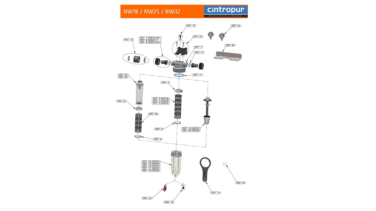 Cintropur NW25 lāpstiņa maina šķidruma plūsmu, izmantojot centrbēdzes kustības, piespiežot lielākas daļiņas trauka lejā, tās tiek samazinātas, atkarībā no izvēlētā filtra uzmavas mikronu izmēra.